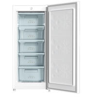 Arca vertical Infiniton CV140L25WEP com 145L de capacidade e classe energética E, ideal para conservação de alimentos congelados.