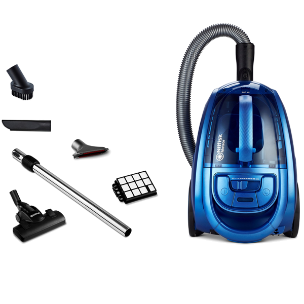 Aspirador Nilfisk Meteor Classic com potência máxima de 800 W e capacidade de 2,5 L, indicado para limpezas eficientes em ambientes domésticos.