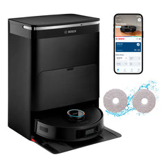 Este aspirador robô 2-em-1 da Bosch combina aspiração e lavagem com uma câmara inteligente e uma estação de serviço completa.