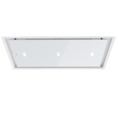 Chaminé decorativa de teto TEKA Dht 97670 Tos Wh com aspiração perimetral "Contour" e altura mínima de 214 mm, equipada com comando à distância e função FreshAir para renovação do ar.