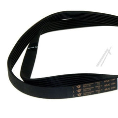 Correia de transmissão Poli-V com 6 sulcos e 1.194 mm de comprimento, compatível com mais de 100 modelos de máquinas de lavar e lavar-secar roupa das principais marcas.