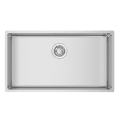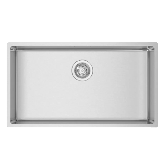 Cuba de aplicação inferior com medida externa de 780x440 mm e acabamento escovado.
