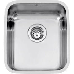 Cuba de aplicação inferior polida Rodi Brasilia, com medida externa de 380x440 mm e profundidade de 200 mm, fornecida com sifão e válvula manual de cesta.