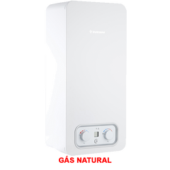 Esquentador a gás natural com capacidade de 11 l/min e acendimento automático por hidrogerador, ideal para fornecimento contínuo de água quente com modulação automática da chama.