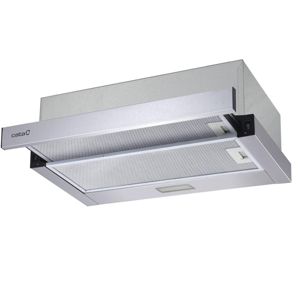Exaustor CATA TFB5160X com capacidade de extração de 300 m³/h e motor tangencial extra silencioso, ideal para cozinhas que procuram eficiência e discrição.