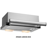 Exaustor telescópico de 50 cm com frente em aço inoxidável extraível, motor de dupla turbina e capacidade máxima de extração de 304 m³/h.