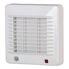 Extrator de banho com caudal de 95 m³/h e nível sonoro de apenas 40 dB, equipado com persiana automática e luz piloto.