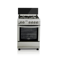 Fogão a Gás com Forno Elétrico HAEGER 60×60 - 64 L, 4 Zonas, Inox/Cinzento