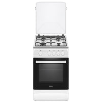 Fogão a gás de 4 queimadores com forno a gás, estrutura em inox e sistema de segurança FFD, adequado para utilização com gás natural ou butano/propano.