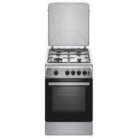 Fogão a gás de 4 queimadores com forno a gás, estrutura em aço inox e sistema de segurança FFD, adequado para utilização com gás butano/propano e possibilidade de conversão para gás natural.