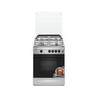Fogão a gás de 60x60 cm com 4 queimadores e forno a gás, equipado com painéis em aço inox e sistema de segurança FFD.