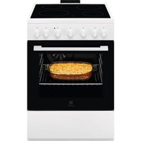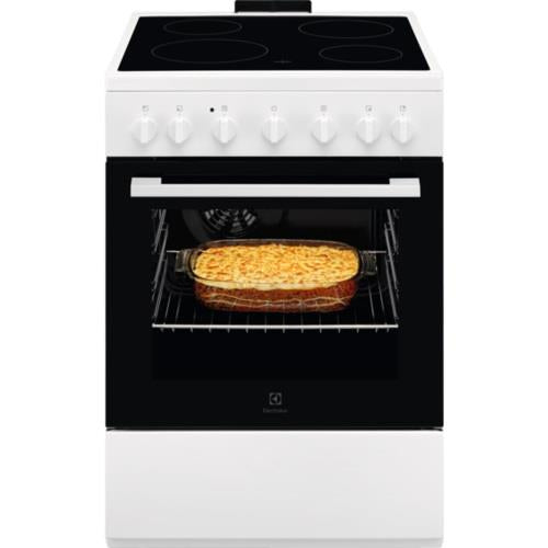 85x60x60, Vitrocerâmica 4 zonas, Forno Multifunções com ventilador, Display digital, Forno com limpeza catalítica, Grill, Forno com 5 funções, Gaveta inferior para guardar utensílios de cozinha, branco