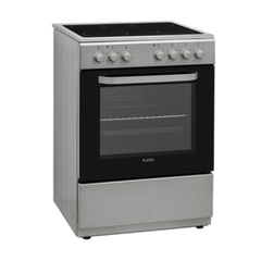 Fogão elétrico de 60 cm com 4 zonas de vitrocerâmica e forno elétrico ventilado de 65L, ideal para quem procura versatilidade e eficiência.