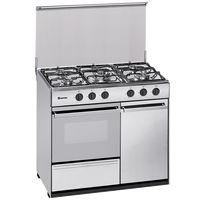 Fogão a gás de 5 queimadores com forno de 55L e classe energética A, equipado com queimador Wok e sistema de segurança completo.