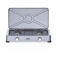 Fogareiro a gás de 2 queimadores com superfície em esmalte de fácil limpeza e queimadores de alumínio resistentes à corrosão.