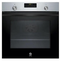 Forno multifunções, 60 cm, aço inox (painel) & preto (porta/puxador), 71 litros, A+, comandos rotativos rebatíveis com visor LED âmbar, 7 modos de aquecimento, Auto Chef c/ 10 receitas (programas automáticos), limpeza pirolítica & assistente de limpeza, calha telescópica fixa com 1 nível, porta com 4 vidros, relógio eletrónico (horas, alarme, programação de início e fim de cozedura)