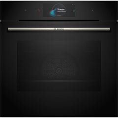 SER8, Forno multifunções AddedSteam (adição de vapor) com Função Air Fry e Crisp Finish, 60 cm, vidro preto, 71 litros, A+, TFT-Touchdisplay Pro (160mm x 70mm), Home Connect, Motor EcoSilence Drive, 22 modos de aquecimento, Função Assist (assistente de cozinha), PerfectBake Plus, PerfectRoast Plus, Limpeza Pirolítica, assistente de limpeza, SoftClose&SoftOpen, porta com 4 vidros CoolTouch, relógio eletrónico com início e fim de confeção, iluminação LED