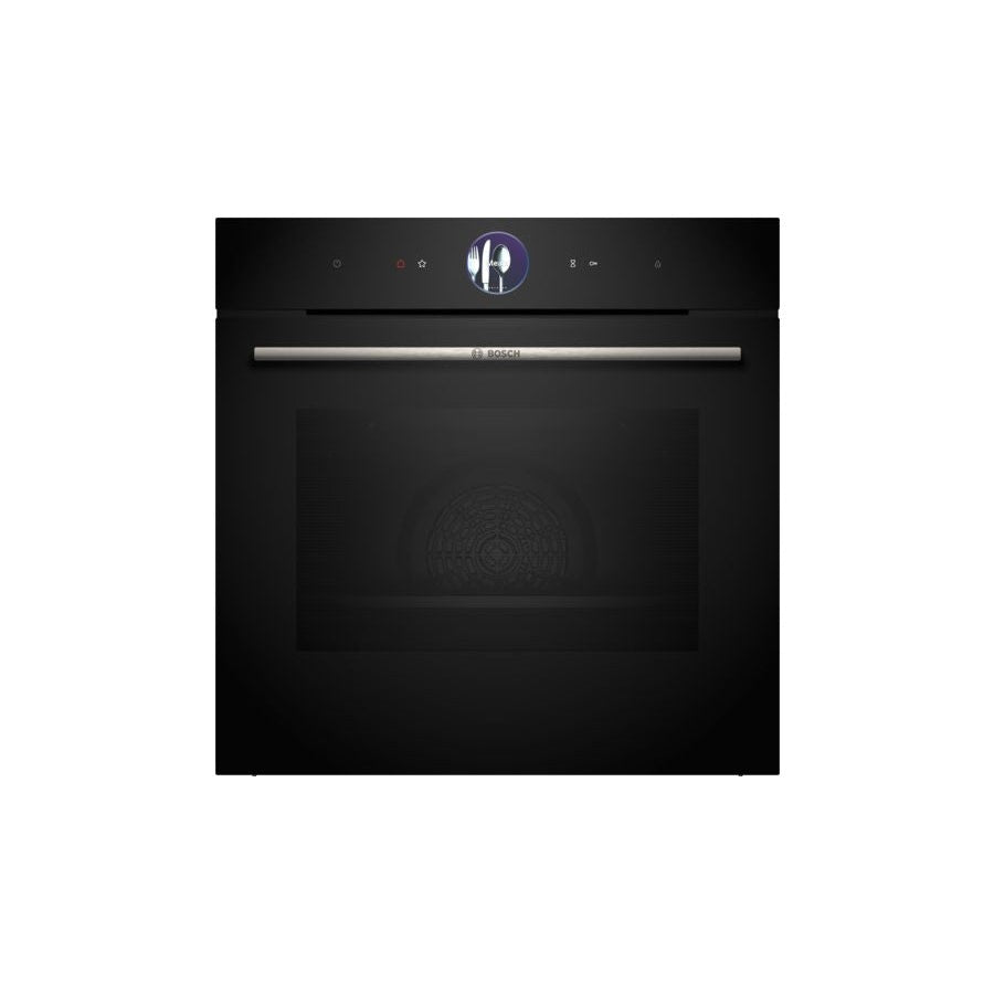 SER8, Forno multifunções FullSteam (Steam Plus 120ºC) com Função Air Fry, 60 cm, vidro preto, 71 litros, A+, TFT-Touchdisplay Plus (65mm x 65mm), Home Connect, Motor EcoSilence Drive, 21 modos de aquecimento, Função Assist (assistente de cozinha), limpeza EcoClean (parede posterior), assistente de limpeza, SoftClose&SoftOpen, porta com 3 vidros CoolTouch, relógio eletrónico com início e fim de confeção, iluminação LED