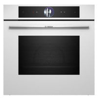 SER8, Forno multifunções FullSteam (Steam Plus 120ºC), 60 cm, vidro branco, 71 litros, A+, TFT-Touchdisplay Plus (65mm x 65mm), Home Connect, Motor EcoSilence Drive, 21 modos de aquecimento, Função Assist (assistente de cozinha), Função Air Fry (tabuleiro especial HEZ629070 disponível como acessório), limpeza EcoClean (parede posterior) & assistente de limpeza, SoftClose&SoftOpen, porta com 3 vidros CoolTouch, relógio eletrónico com início e fim de confeção, iluminação LED