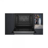 IQ300, Forno multifunções pulseSteam (adição de vapor 1 nível) e com Função airFry (tabuleiro incluído), 60 cm, vidro preto com puxador em aço inox, 71 litros, A+, TouchControl-LED (branco), 8 modos de aquecimento, cookControl 15 (programas automáticos), activeClean (limpeza pirolítica) & humidClean, softMove, porta com 4 vidros CoolTouch, relógio eletrónico (horas, alarme, programação de início e fim de cozedura)