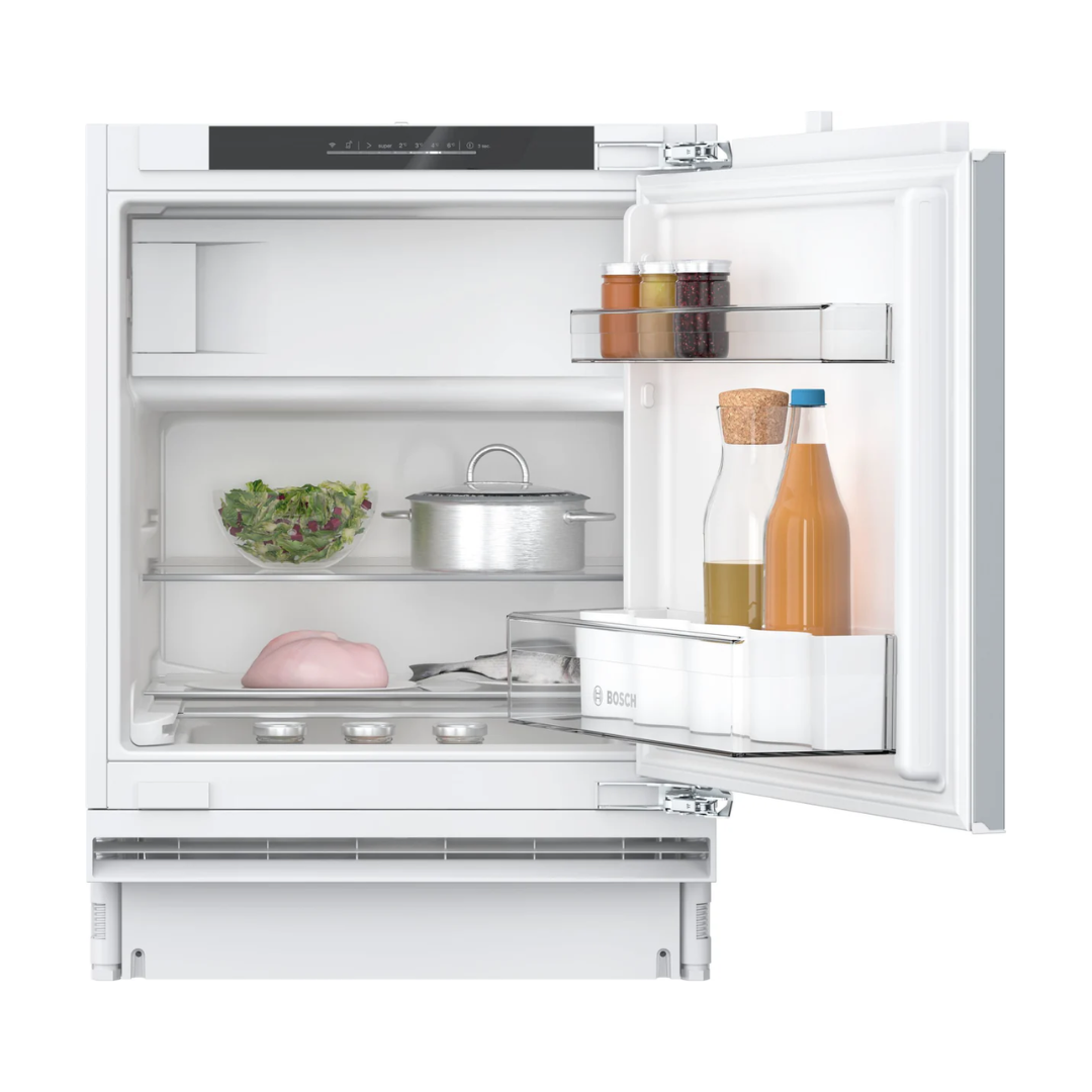 SER4, Frigorífico integrável 82 x 59,8 x 54,8 cm, Porta Fixa, 110 (17 + 93) litros, D, 119 kWh, 35 dB, SN-T, Compartimento de congelação, 1 compartimento de conservação, Visor Led, Alarme sonoro e óptico de porta aberta, Super refrigeração, Iluminação LED com SoftStart, Home Connect