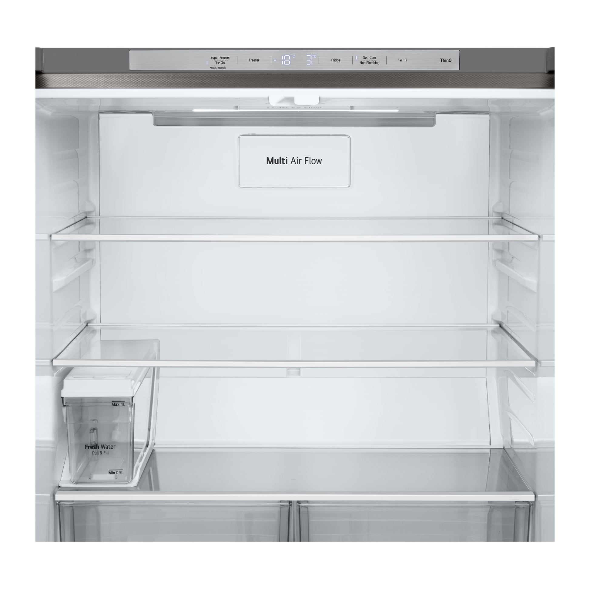 Frigorífico Americano LG de 508L com tecnologia No Frost e compressor Inverter Linear™, equipado com dispensador de água e gelo.