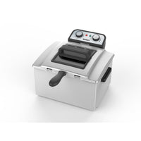 Fritadeira inox de 5 litros com 3 cestos e potência de 3000 W, equipada com sistema "Cold Zone" para resultados profissionais.