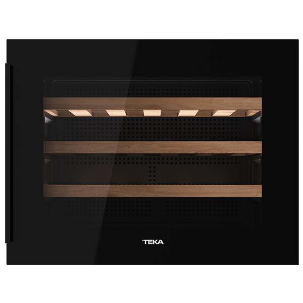 Cave de vinho de encastre TEKA Rvi 10024 com capacidade para 24 garrafas, temperatura ajustável entre 5ºC e 18ºC e sistema anti vibração.