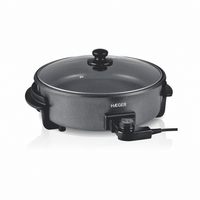 Grelhador Multifunções HAEGER TOP GOURMET 36 com 1500W de potência - antiaderente, 36 cm de diâmetro, temperatura até 240º c • Panela elétrica antiaderente • Ideal para cozidos, assados, guisados, paelhas, pizzas, omeletes, etc. • Tampa de vidro com respirador • Termostato regulável com 5 níveis de temperatura até 24