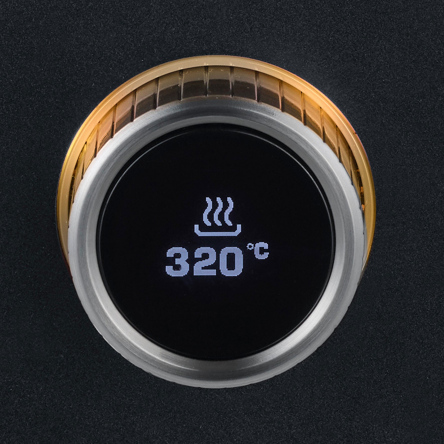 - Luz LED indicadora do estado (Azul = Standby, Laranja = <320°C, Vermelho = >320°C-500°C)