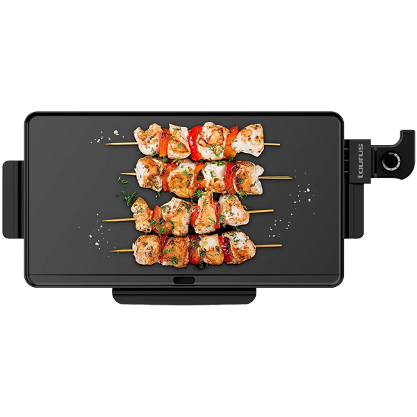 Grelhador eléctrico com uma grande superfície de cozedura de 49 x 27 cm. Cozinhe uma variedade de alimentos ao mesmo tempo. Possui regulador de temperatura.