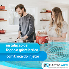 Serviço de instalação de fogão a gás com troca de injetores e remoção do equipamento antigo, realizado por técnico certificado, ideal para garantir compatibilidade com o tipo de gás e o correto funcionamento do equipamento.