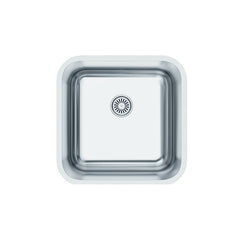 Lava-loiça de encastre sob bancada com cuba quadrada de 445 mm em aço inoxidável AISI 304, ideal para móveis de 50 cm de largura.