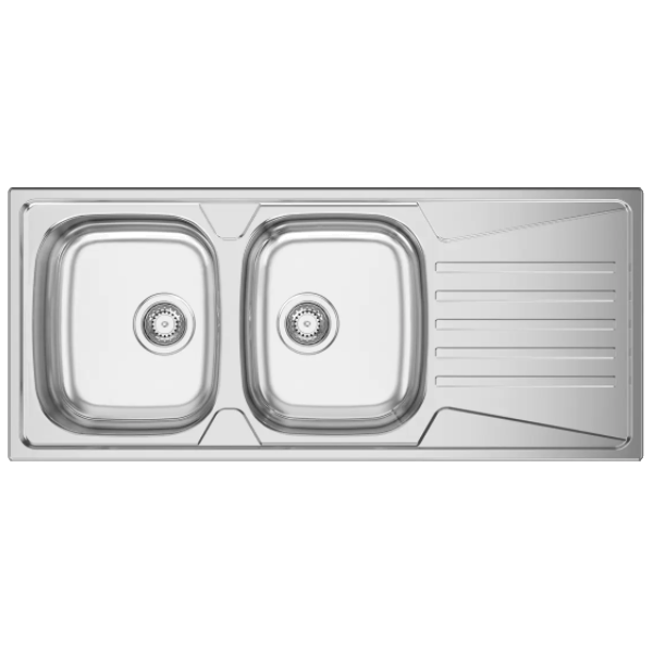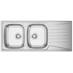 Lava loiças duplo de encastre com dimensões de 1160x500mm e profundidade de 160mm, ideal para móveis de 800mm.