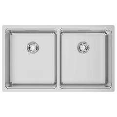 Cuba de encastre em aço inoxidável polido com 740x440mm e 2 cubas de 340x400mm, ideal para móveis de 800mm.