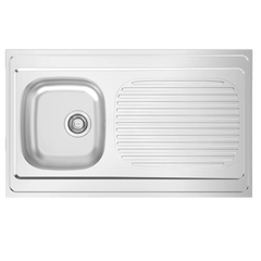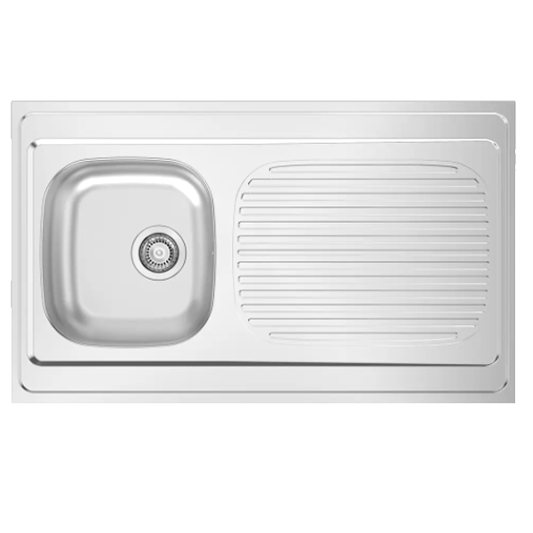 Lava loiças de pousar reversível com medidas externas de 1000x600mm e cuba de 340x370mm, em aço inoxidável com acabamento não polido.