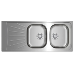 Lava loiça de encastrar com duas bacias de 340x400x160 mm e fabricada em aço inoxidável 18/10.