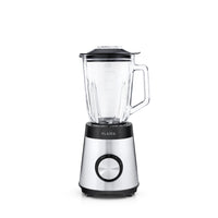 Liquidificadora FLAMA 2237FL com potência de 1300W e copo de vidro de 1,5 litros, ideal para misturas homogéneas e utilização intensiva.