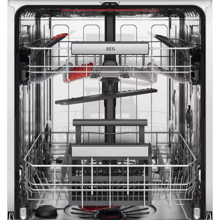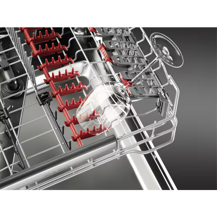 - Cesto superior: 6 Soft grips para copos de vinho, 2 prateleiras rebatíveis, 2 prateleiras rebatíveis para copos, 2 Soft Spikes, suporte rebatível para chávenas, cabo em aço inoxidável AEG
