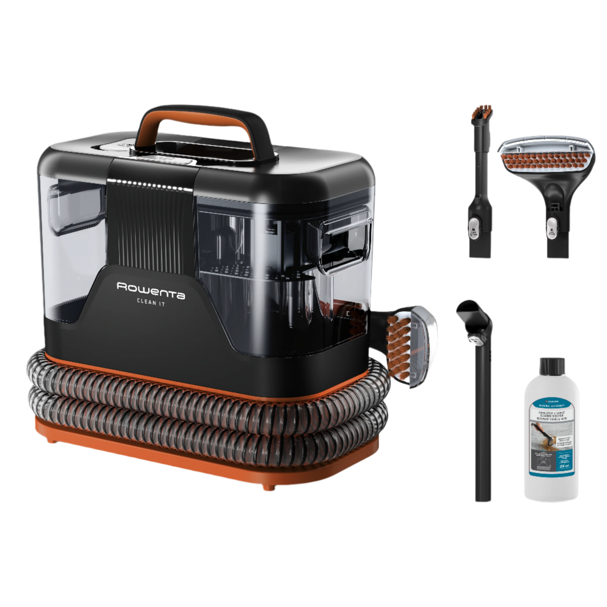 Máquina de limpeza Rowenta IN5011F0 com capacidade de 1,5 L e potência de 400 W, adequada para limpeza molhada de tapetes e estofos.
