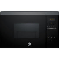 Micro-ondas integrável, 38 cm, cinza grafite (parte superior) & preto, 25 litros, controlo tátil deslizante com visor âmbar, prato c/ 31,5cm diâmetro, 5 níveis de potência, Grill, Auto Chef c/ 8 receitas (programas automáticos), assistente de limpeza aqualítica, abertura à esquerda, temporizador eletrónico, iluminação interior LED