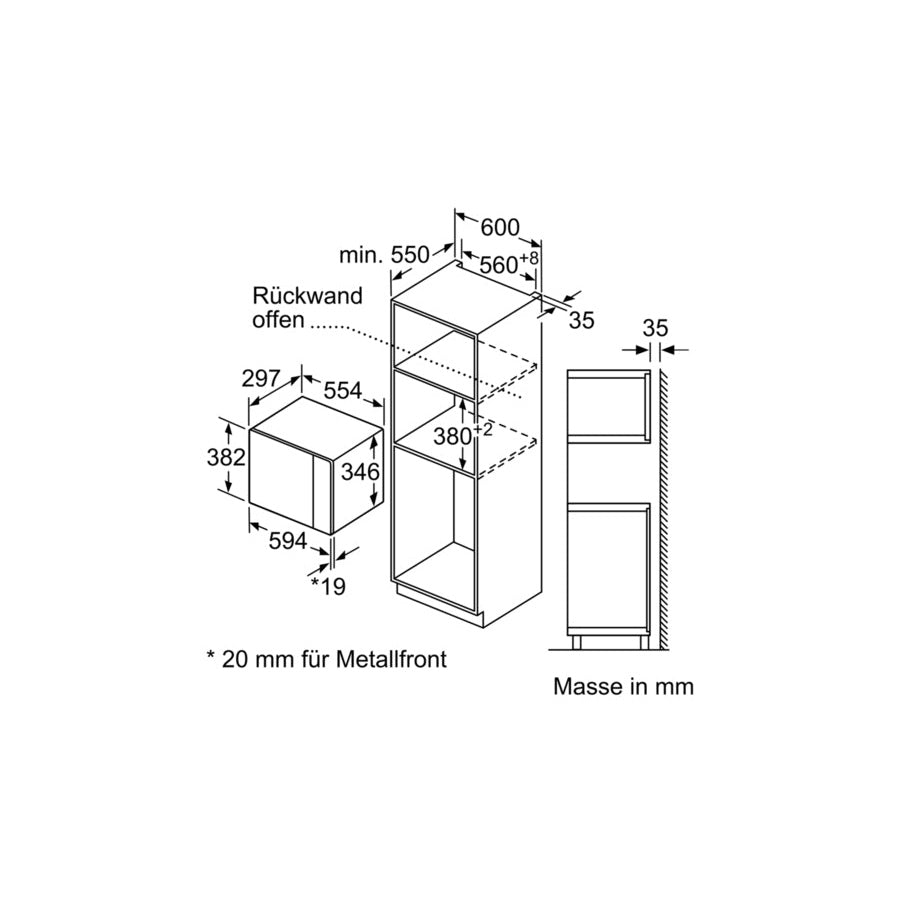Integrável num armário de 60 cm de largura (minímo 30 cm profundidade), Integrável num armário alto