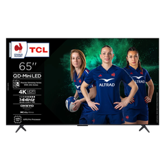 Smart TV TCL de 65" com tecnologia Mini LED, resolução 4K UHD e Dolby Vision IQ para uma experiência de imagem superior. Ideal para cinema e gaming, com taxa de atualização até 240Hz e som Dolby Atmos.