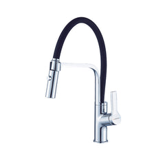 Torneira misturadora monocomando em aço inoxidável 304 com boquilha giratória 360º e função de duche integrada.