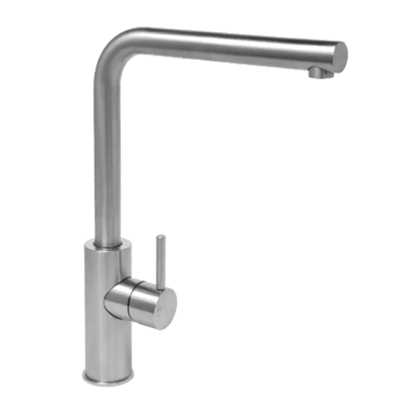 Misturadora de cozinha monocomando com bica alta giratória em 100% aço inox AISI 316, ideal para uma distribuição de água eficiente.