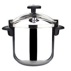 Panela de pressão de 8 litros em aço inoxidável 18/10, com sistema de fecho progressivo e elevada eficiência energética.