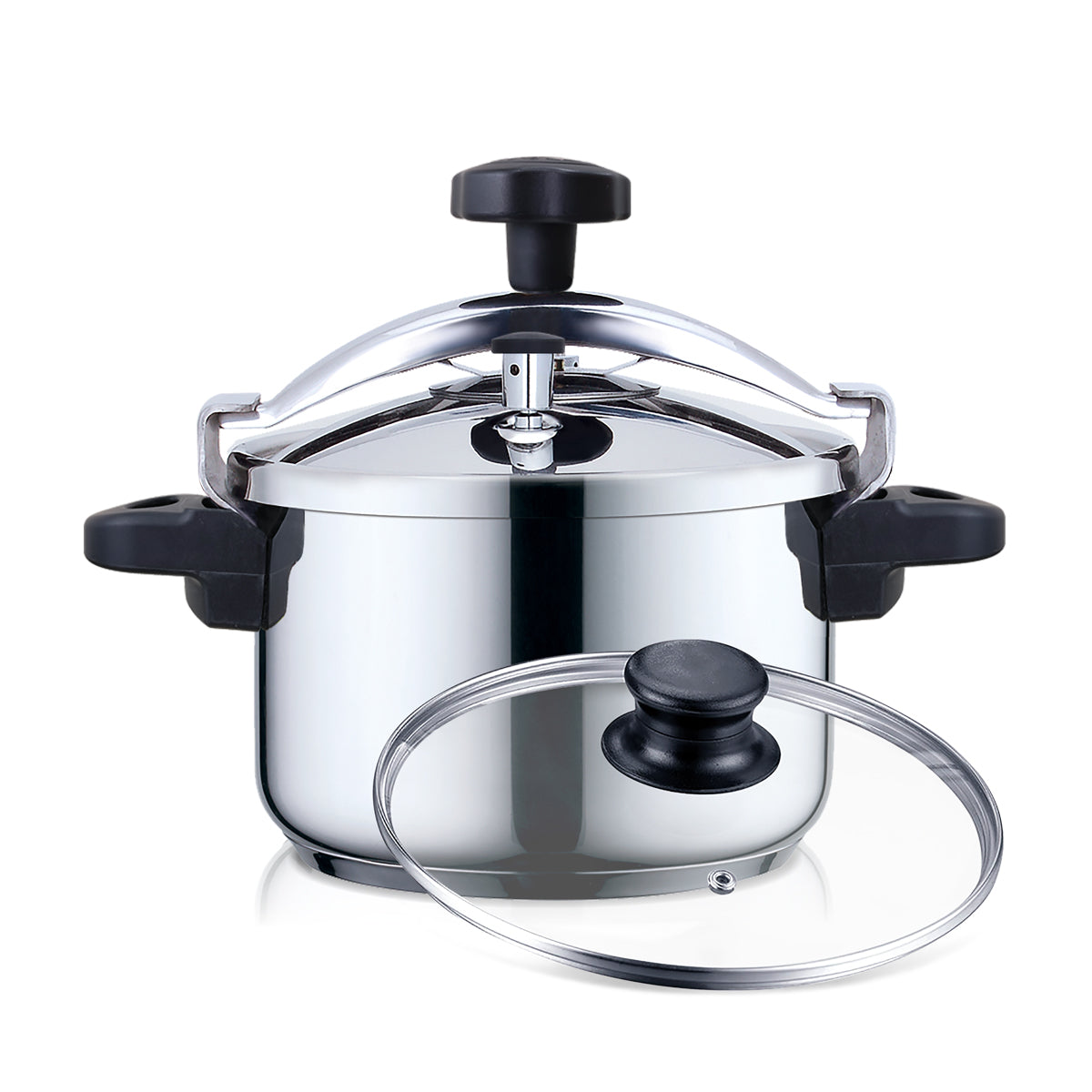 undefined Equipada com 3 Sistemas de Segurança: - Válvula giratória - Válvula de segurança - Braço metálico • Maçaneta de abertura no topo • Tampa e Corpo em aço inoxidável de alta qualidade