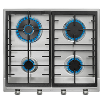 4 queimadores de gás (auxiliar 1,00 kW + 2 semirápidos 1,75 kW + rápido 2,80 kW + duplo anel 4,00 kW)