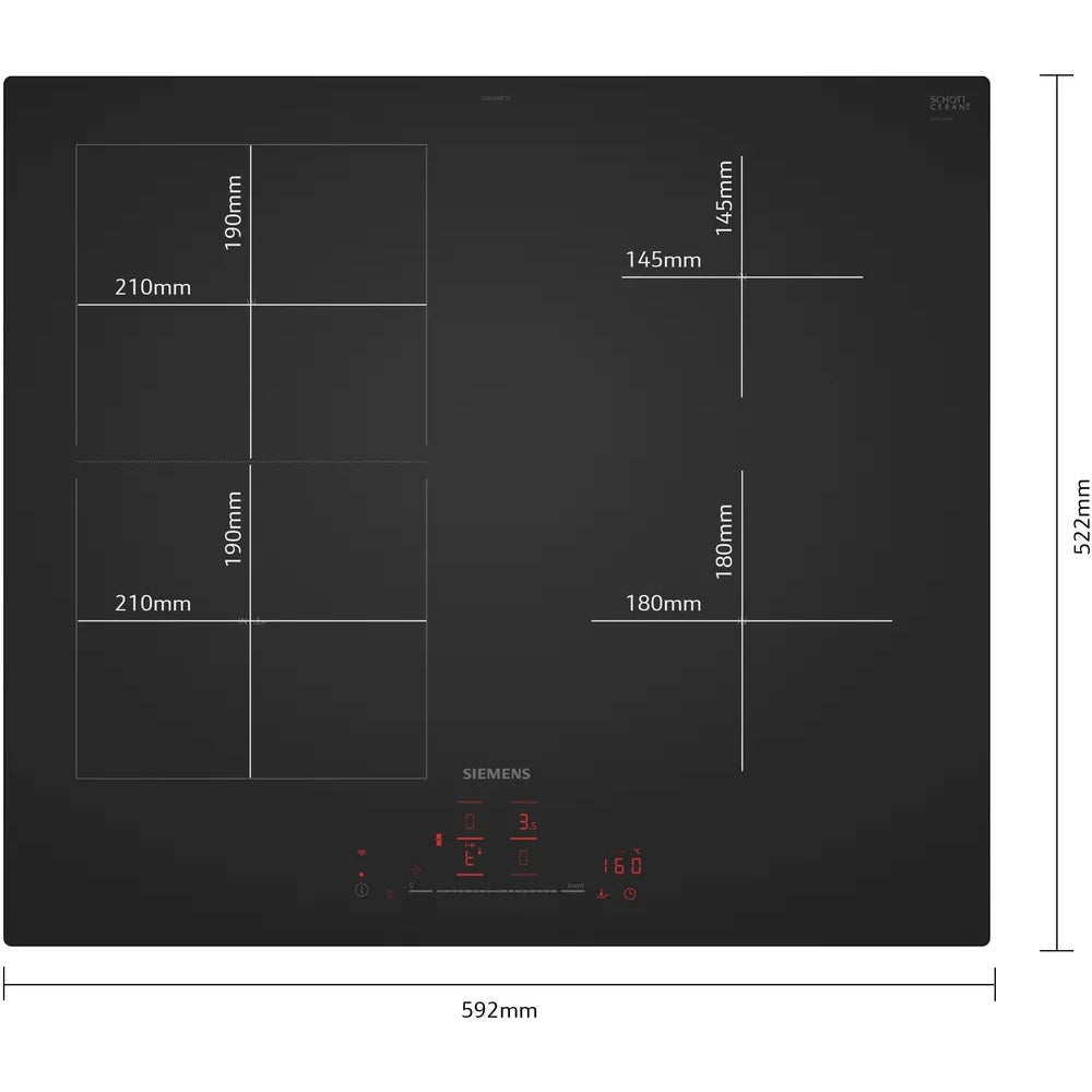 Placa de Indução Siemens ED61AHSC1E | 60 cm, 4 zonas, Home Connect