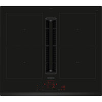 Placa de indução Siemens de 60 cm com 2 zonas combi e ventilação integrada, equipada com motor iQdrive e controlo touchSlider+ para uma utilização avançada e eficiente.